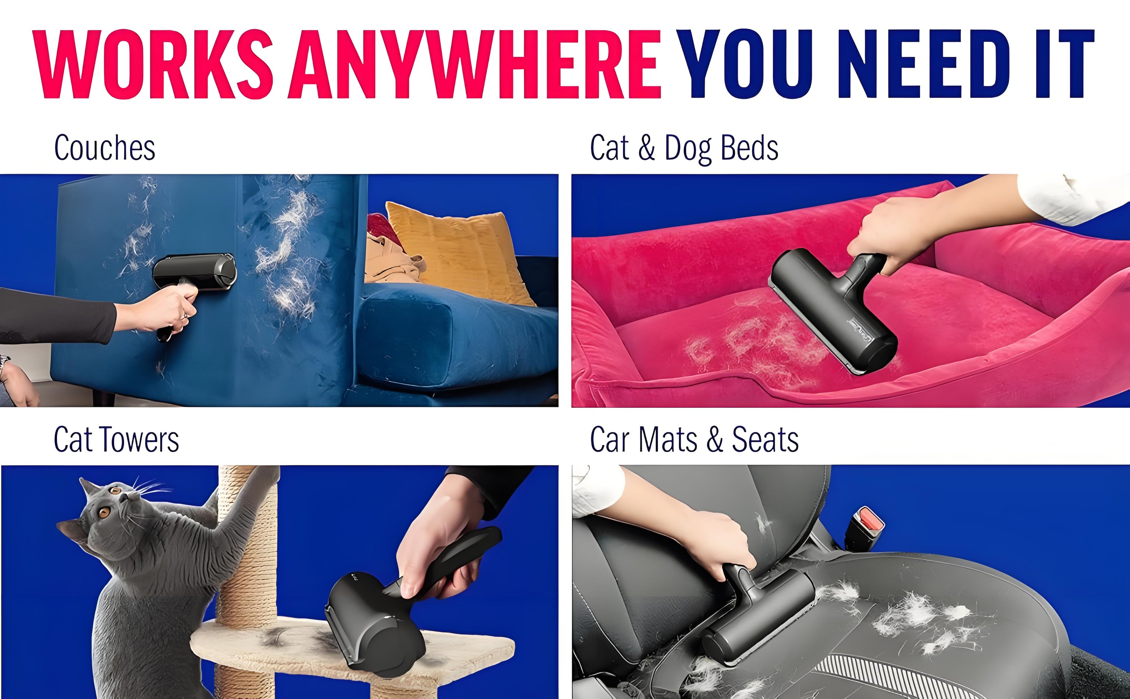 You can use it anything that is made of fabric and can collect pet hair. You can use it on pieces of furniture as big as a couch, and also on items as small as hat. It’s perfect for car seats, clothing, sofas, curtains, mattresses, and anything else you can think of that has a tendency to attract pet hair.